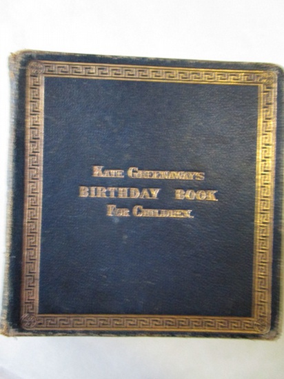 Kate Greenaway's Birthday Book for Children Erste Ausgabe London, Routledge, um 1800. 126 Seiten mit 382 Illustrationen, davon 12 kolorierte Tafelseiten und Seiten für Eintragungen 12°, Ledereinband mit Goldprägung, dreiseitiger Goldschnitt. Einband berieben, Ecken bestoßen, kleine Beschädigung am oberen Kapital, gelegentliche, saubere Eintragungen, minimal stockfleckig.