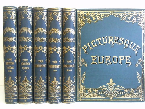 With Illustrations on steel and wood by the most eminent Artists. 5 Bände London, Cassell Petter & Galpin, 1875. 1880. XII, 288, VII, 288, IX, 288, IX, 288, IX, 288 mit zusammen 64 Tafeln in Stahlstich und unzählichen Textholzschnitten, original Leinen mit reichen Goldprägungen, Goldschnitt, quart, (etwas stockfleckig / Exlibris auf Vorsatz / gering bestoßen und berieben)---- einheitlich komplette Original-Ausgabe / Text englisch / Band 1/2: The British Isles / Band 3: Normandie, Alpen, Rheinland, Venedig, Spanien etc. / Band 4: Auvergne, Alte Deutsche Städte, Norwegen, Nord Italien, Sizilien, Schwarzwald etc. / Band 5: Schweden, Tirol, Gibraltar, Dresden und Sächsische Schweiz, Konstantinopel, Belgien, Russland, Jura, Athen, Holland etc. -.