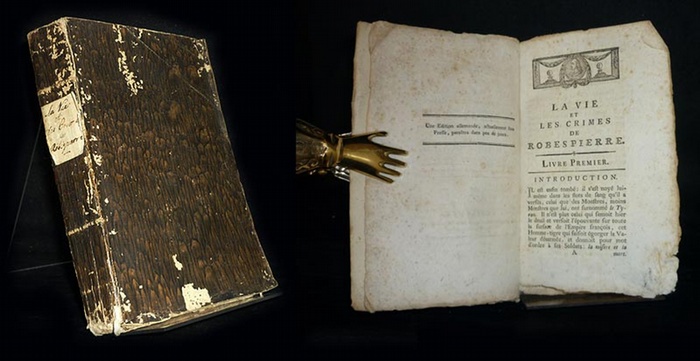 La vie et les crimes de Robespierre, surnomme le tyran; depuis sa naissance jusqu'a sa mort. Depuis sa naissance jusqu'a sa mort. Ouvrage dedié à ceux qui commandent, et à ceux qui obéissent. Par M. le Blond de Neuveglise. Augsbourg: Chez tous les Libraires 1795. (2), 370 Seiten. 8° (18,5 x 11,5 cm). Interimsbindung mit Kleisterpapier-Kartonage der Zeit. Aufgeschnittener, aber nicht beschnittener Block, dadurch breitrandig bis hin zum Schöpfrand des Papiers. - Zu Beginn stärker stockfleckig. - Selten. Umschlag berieben und mit Gebrauchsspuren, insgesamt noch gut erhalten. - Cioranescu 51592. - Neuveglise (1743-1808) worked as missioner in Africa. - Block uncut. - Cover rubbed. Edges and tail bumped. Pages in different grades foxed. In general still good copy.