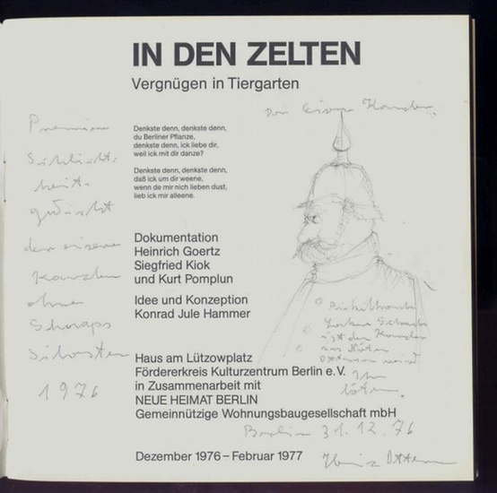 4 dem bekannten Berliner Photographen Manfred Hamm gewidmete figürliche Handzeichnungen in dem Ausstelungskatalog "In den Zelten. Vergnügen im Tiergarten, Dezember 1976.". Ferner 3 Otterson-Kunstpostkarten m. eigenh. Widmungen. Auf einer von diesen 2 eigenh. Zeichnungen. Dazu der Katalog "Otterson" von der Ausstellung d. Neuen Berliner Kunstvereins v. März 1974. Darin 1 Seite m. eigenh. Widmung Ottersons ebenfalls an Manfred Hamm. _.