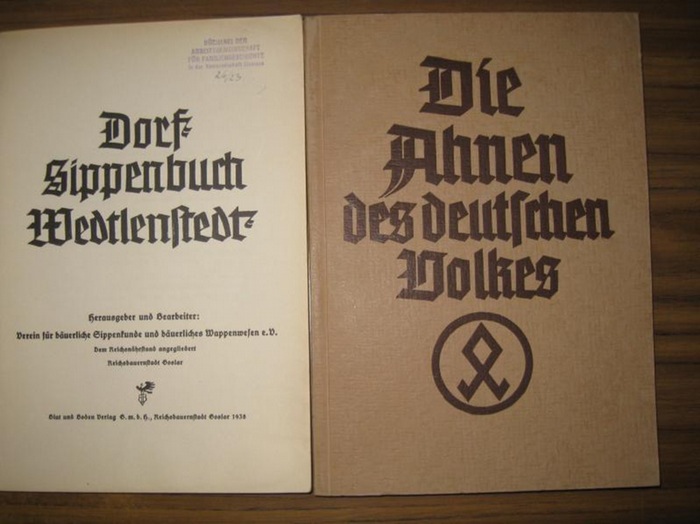 Dorf-Sippenbuch Wedtlenstedt. (= Die Ahnen des deutschen Volkes.) Blut und Boden Verlag in der Reichsbauernstadt Goslar 1938. Erste und einzige Ausgabe. 4°. Bräunliche Original-Broschur. Im Buchschnitt leicht angestaubt. 212(+1) Seiten. Maschinenschriftliches Typoskript. Im Innenbereich ebenfalls schön sauber, fest in der Bindung. Wirklich gutes Exemplar. Aus dem aufgelösten, genealogischen Archiv der Arbeitsgemeinschaft für Familiengeschichte im Kulturkreis Siemens mit deren Signaturen und Stempel. M12500-316971.