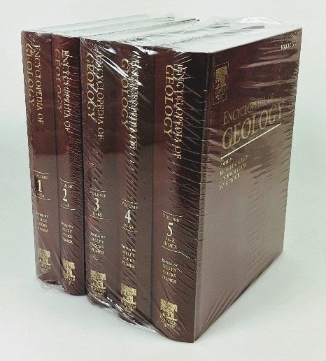 Encyclopedia of Geology - 5 volumes : 1. A - En / 2. En - F / 3. G - M / 4. N - Se / 5. Se - Z, Index. London : Elsevier 2005. 594, 545, 659, 692, 807 p. Hardcover/Pappeinband. Like new. Shrink wrapped. 5 volume set. / Wie neu. In Folie verschweißt.