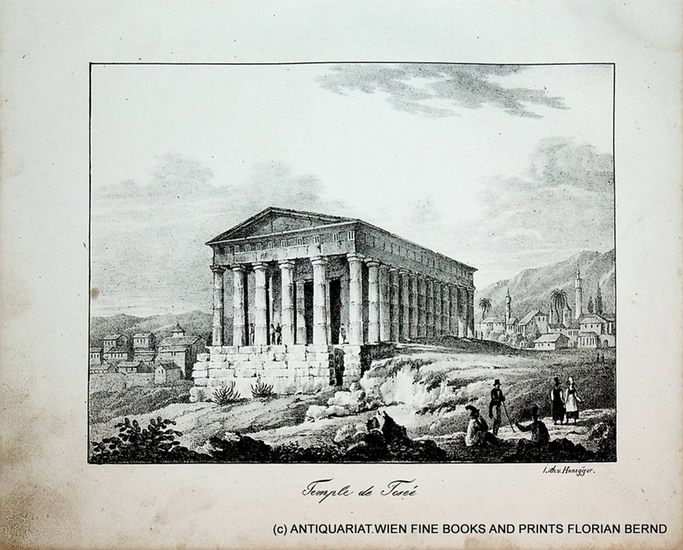ATHENS, Greece, Temple of Hephaestus, original print ca. 1840 ca.1840. original lithograph / original Lithographie by / von Honegger, sheet size approx. / Blatt ca. 20 x 24,5 cm, image size approximately / Bild ca. 14,5 x 19 cm. Antique Print, antique print, antike Grafik.