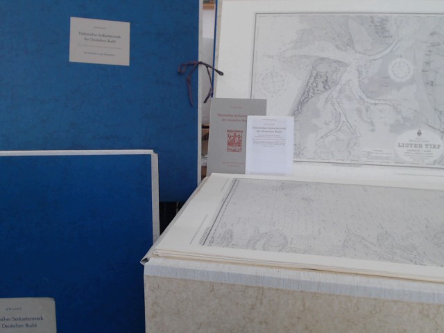 Historisches Seekartenwerk der Deutschen Bucht. Vollständig! 95 Seekarten-Faksimiles. Neumünster; Wachholtz, 1969 - 1980. 95 Karten, teilweise mehrblättrig; Inhaltsverzeichnis, 4 S.; Informationsheft zum Erläuterungsband, Softcover (geheftet), 19 S. Gr.-Fol.(=über 45cm), 61x86 cm, Loseblattsammlung in 3 Kartenmappen (Halbleinen). Historisches Seekartenwerk der Deutschen Bucht. Vollständig! 95 Seekarten-Faksimiles im Lichtdruck herausgegeben in 6 Lieferungen (3 Kartenmappen). Auszug aus dem Inhalt: 1. Lieferung: 14-17 Blaeu, Nordsee; Ostfriesische Küste; Innere Deutsche Bucht; Westküste (1623). 30 Commerzdeputation Hamburg, Deutsche Bucht (1762)...81 Meyer, Elbe (1875). 2. Lieferung: 1 Anthonisz, Caerte van Oostland (1543). 25 Guitet, Südliche Nordseeküste (etwa 1708). 26 Mitchell, Helgoland (1719)...75 Meyer, Elbe (1868). 76 Grapow, Eider (1868). 3. Lieferung: 13 Anonymus, Eider (1620). 20 Doncker, Westküste (1672). 22-23 Sørensen, Elbe; Westküste (1679). Hegelund, Röm/Sylt (1689)...78-79 Grapow, Ems; 80 Ostfriesische Inseln (1870). 4. Lieferung: 2-5, Waghenaer, Südliche Nordsee; Weser/Elbe/ Eider/Hever (1585). 6 Haeyen, Südliche Nordseeküste (1585)...65 Zahrtmann, Binnen-Helgoland (1858). 67 Koehler, Deutsche Bucht, Übersicht (1858). 5. Lieferung: 39 Mensing, Weser (1791). 62 Cudlip, Helgoland (1855). 83 Ostfriesische Inseln (1878)...96 Elbemündung (1896). 97 Schleswig-Holstein Nord (1898). 6. Lieferung: 92 Jade/Weser (1895). 93 Jade/Weser/Elbe, (1895). 98 Schleswig-Holstein Süd (1898). 100 Lister Tief (1904). Ehemaliges Bibliotheksexemplar mit entsprechender Ausstattung. Mappen teils leicht fleckig und kratzspurig. Eine Mappe mit 4 Einrissen von je ca. 7-10 cm Länge am Rücken. Kleine oberflächliche Fehlstelle vom Entfernen der Bibliothekskennzeichnung bei einer Mappe. Bei der dritten Mappe ist das aufmontierte Deckelschild teils gelöst. Karten: Einige wenige Karten an den Rändern etwas knickspurig, wenige Karten minimal angerändert. Insgesamt schöner Zustand.