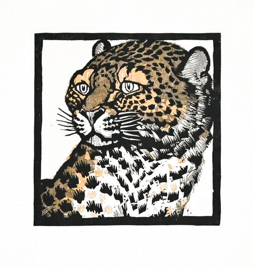 Farbholzschnitt in Schwarz, Gelb und Grau. Pantherkopf. Wien, Verlag der Gesellschaft für vervielfältigende Kunst, 1916. circa 15,3 x 14,3 cm (nur Bild)., 1 Blatt, circa 40 x 29,3 cm. unten mit Verlagsangabe, unsigniert Kopf eines Panters (eher Geparden?) nach links, auf festerem Karton mit Bezeichnung "Pantherkopf. Farbiger Holzschnitt". Jungnickel studierte bei Alfred Roller an der Wiener Kunstgewerbeschule und wurde dann Mitarbeiter der Wiener Werkstätte. Mit Gustav Klimt war er eng befreundet und die beiden arbeiteten auch an gemeinsamen Projekten zusammen. - Nur die Rückseite mit kleinen Montagespuren und gebräunt, vorne hell und sauber.