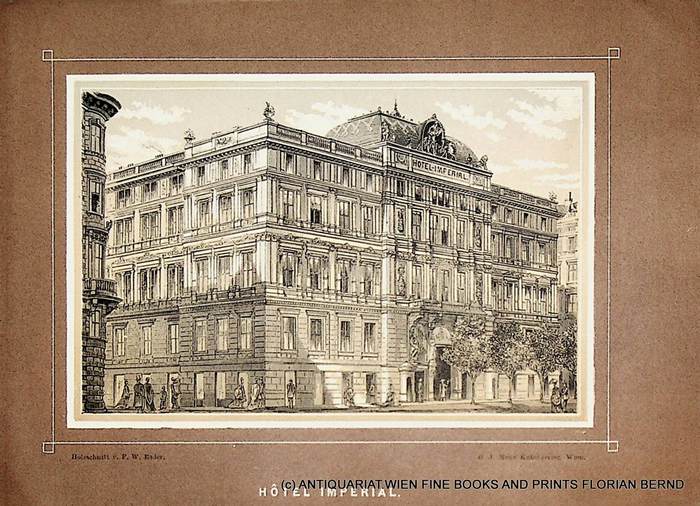 WIEN I, Hotel Imperial (Wien) ca. 1875 [aus: Bader: Wien?s Baudenkmale etc] Wien, Verlag Manz, ca. 1875. original Farbholzschnitt von F. W. Bader, Blattformat ca. 13,5 x 18 cm, Bildformat ca. 9 x 14 cm. N/ W 66, 16 // Antique Print, ORGINALE GRAPHIK.