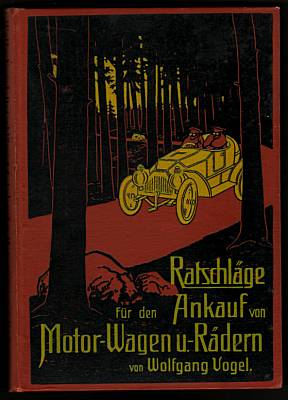 Ratschläge für den Ankauf von Motor-Wagen und -Rädern. Offizielles Automobilbuch des D.T.C.U. (Deutsche Touren-Club-Union). 2. erweiterte Auflage. Berlin-Charlottenburg: Phönix-Verlag. 1914. 214 S. 8°. Mit zahlreichen Abbildungen. Umfangreiche Fingerzeige für den Automobilisten: - Welches Fahrzeug verdient den Vorzug: Elektromobil, Dampfwagen oder Benzin usw.? - Welchen Nutzen bietet das Gebrauchsauto für den Arzt, Tierarzt, den Notar, den Gutsbesitzer, den Geschäftsreisenden usw. ? - Betriebs- und Unterhaltungskosten des Privatautos. - Wie soll das Motorrad beschaffen sein?" - Einband gering berieben, Wenige Seiten leicht stockfleckig. Insgesamt sehr schönes Exemplar.