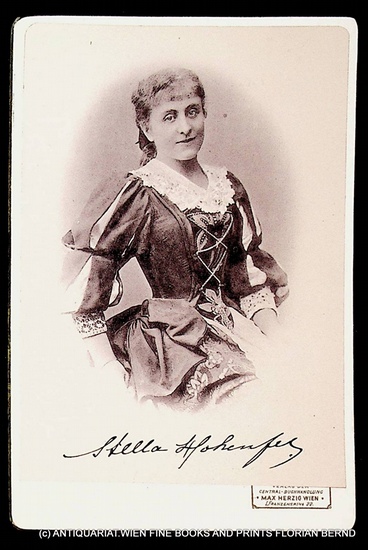 HOHENFELS, Stella Hohenfels geb. Loderbank sp?ter verehelichte Freiin von Berger (1857-1920) Schauspielerin, Portrait Wien, Herzig, ca. 1890. Phototypie, auf Tr?gerkarton kaschiert, Karton ca. 16 x 11 cm, mit Unterschrift im Faksimile.