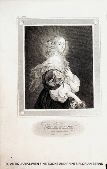 SCHWEDEN, Christina K?nigin von Schweden (1626-1689) Hildburghausen, Bibliographisches Institut, ca. 1850. Portr?t, Portrait, original Stahlstich original steelengraving , Bild: ca. 12,5 x 10,5 cm. original antike Druckgrafik, original antique print.
