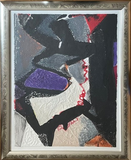 Le serpentin rouge. Carborundum Radierung auf Moulin de Larroque-Papier. Nummeriert (94/95) und signiert. 76 x 57 cm. Unter Glas in silberner Holzleiste gerahmt (93 x 74 cm). (1990).